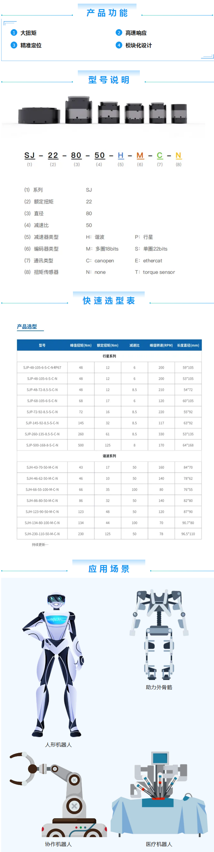 SRI-SJ机器人一体化关节模组是由jiuyou.com(集团)机器人有限公司官网采用模块化设计、核心零部件自主研发的。攻克扭矩力控技术、非线性摩擦力辨识、实时电机内阻检测、高精度力控采样、外部负载惯量辨识等核心技术,精心打造多模块化、低成本、轻量化的关节模组。经济实用,可广泛应用于各种商业服务定制化场景。