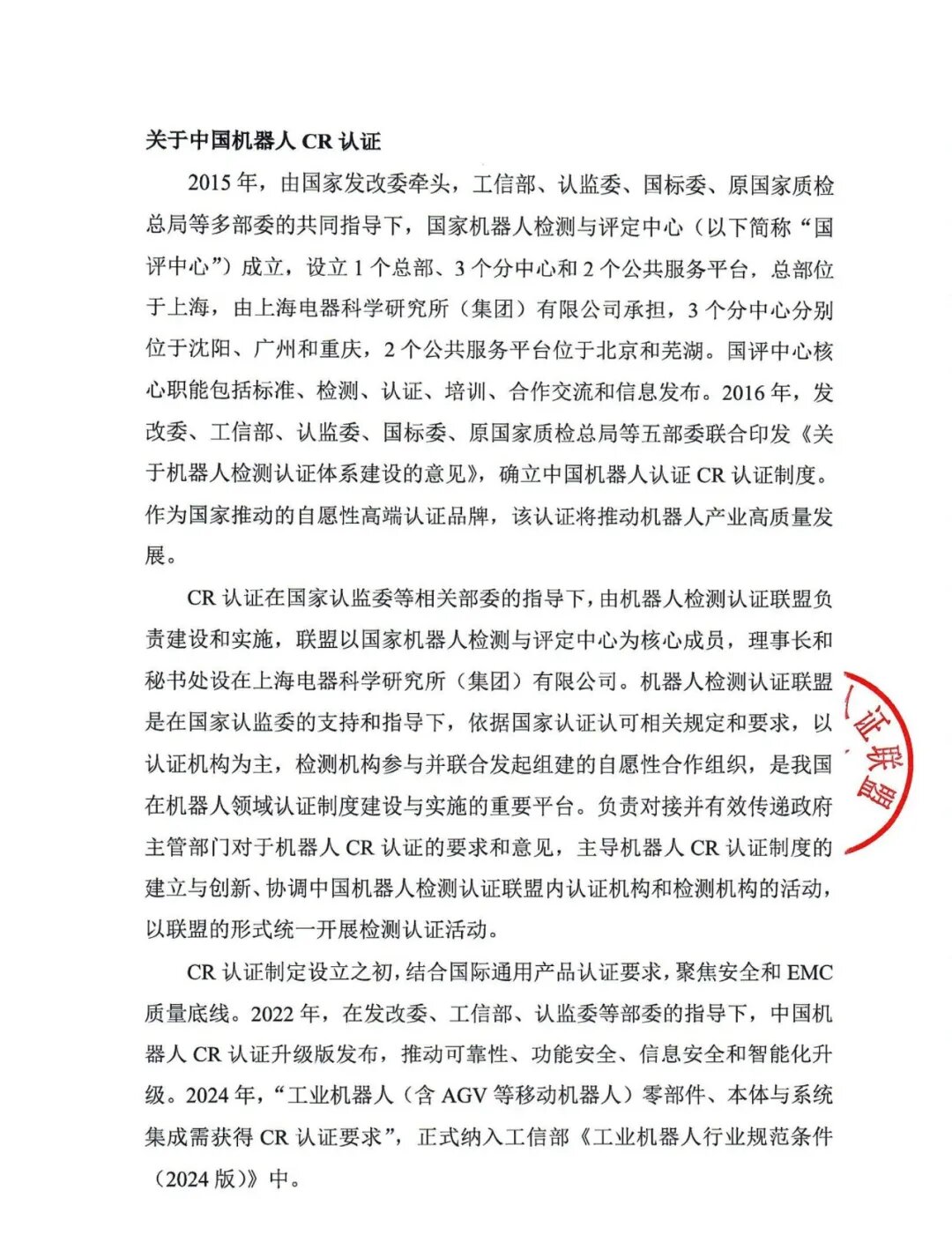 关于筹建中国机器人(CR)认证——人形机器人检测认证工作组的通知
