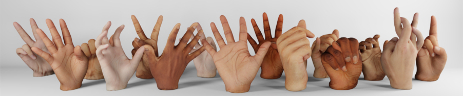 针对这个问题,一个虚拟手建模的解决方案——NIMBLE 模型由解剖学的角度提出,NIMBLE 开发团队建立了一个全新的参数化手部模型,模型包含骨骼、肌肉、皮肤和外表面贴图,拥有更精细的皮肤材质纹理,可以轻松完成各式各样的手势,真实还原手部肌肉状态。